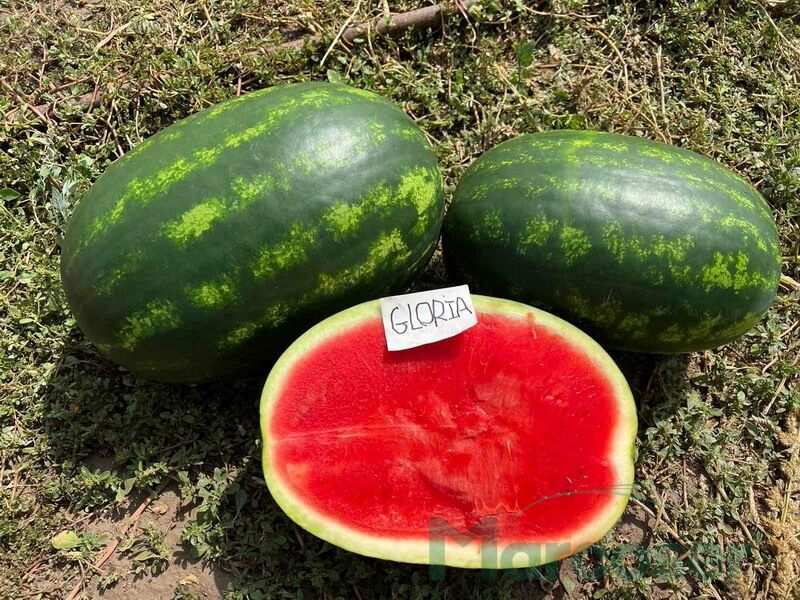 Gloria F1 este un pepene rosu tip Crimson alungit, foarte uniform, cu coaja verde inchis si miez rosu intens, dulce si crocant, cu 12–12,6° Brix.